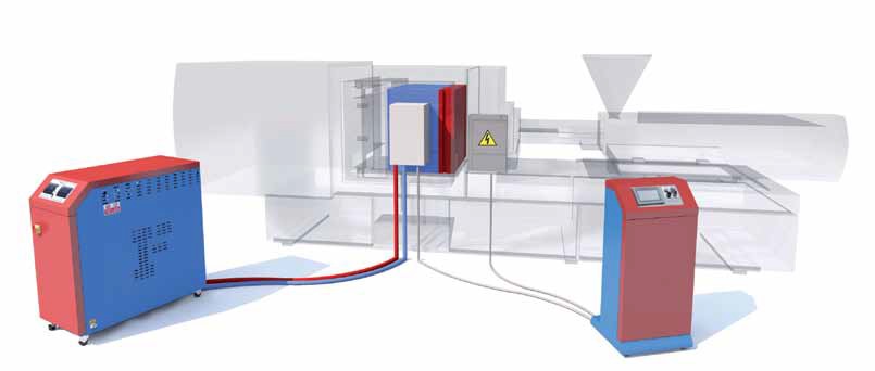 Unidad de control de temperatura para un control preciso de la temperatura en procesos industriales como el procesamiento de plásticos, la producción de sustancias farmacéuticas o la fundición a presión de aluminio. Los termorreguladores de agua están disponibles hasta 180 °C y para aceite térmico hasta 350 °C, con una o más zonas y con potencias de calentamiento de 3 a 36 kW. El enfriamiento puede realizarse directamente con agua proveniente de un sistema de enfriamiento externo o indirectamente a través de un intercambiador de calor.